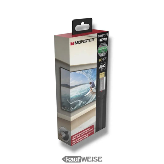Anbieter:Monster Cable Products, IncMonster Pack HDMI 8 K – 4 K 120 Hz 48 GBPS 1,8 m + SCREENCLEAN 60 ML + Power 4 Steckdosen