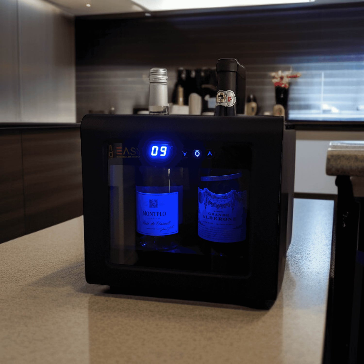 Elektrischer Weinkühler für 2 Flaschen | LED Beleuchtung & Touch-Bedienung | 7-18°C Temperaturbereich