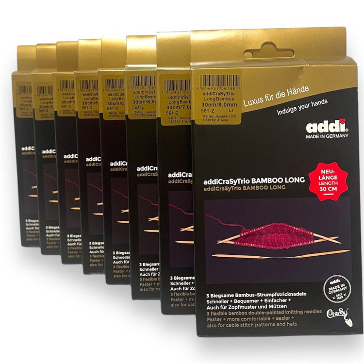 Wähle jetzt deine Wunschstärke und erlebe den Unterschied! Die addiCraSyTrio Bamboo Long (30 cm) sind die perfekten Nadeln für alle, die Qualität, Komfort und natürliche Materialien schätzen. Bestelle jetzt und starte dein nächstes Meisterwerk!